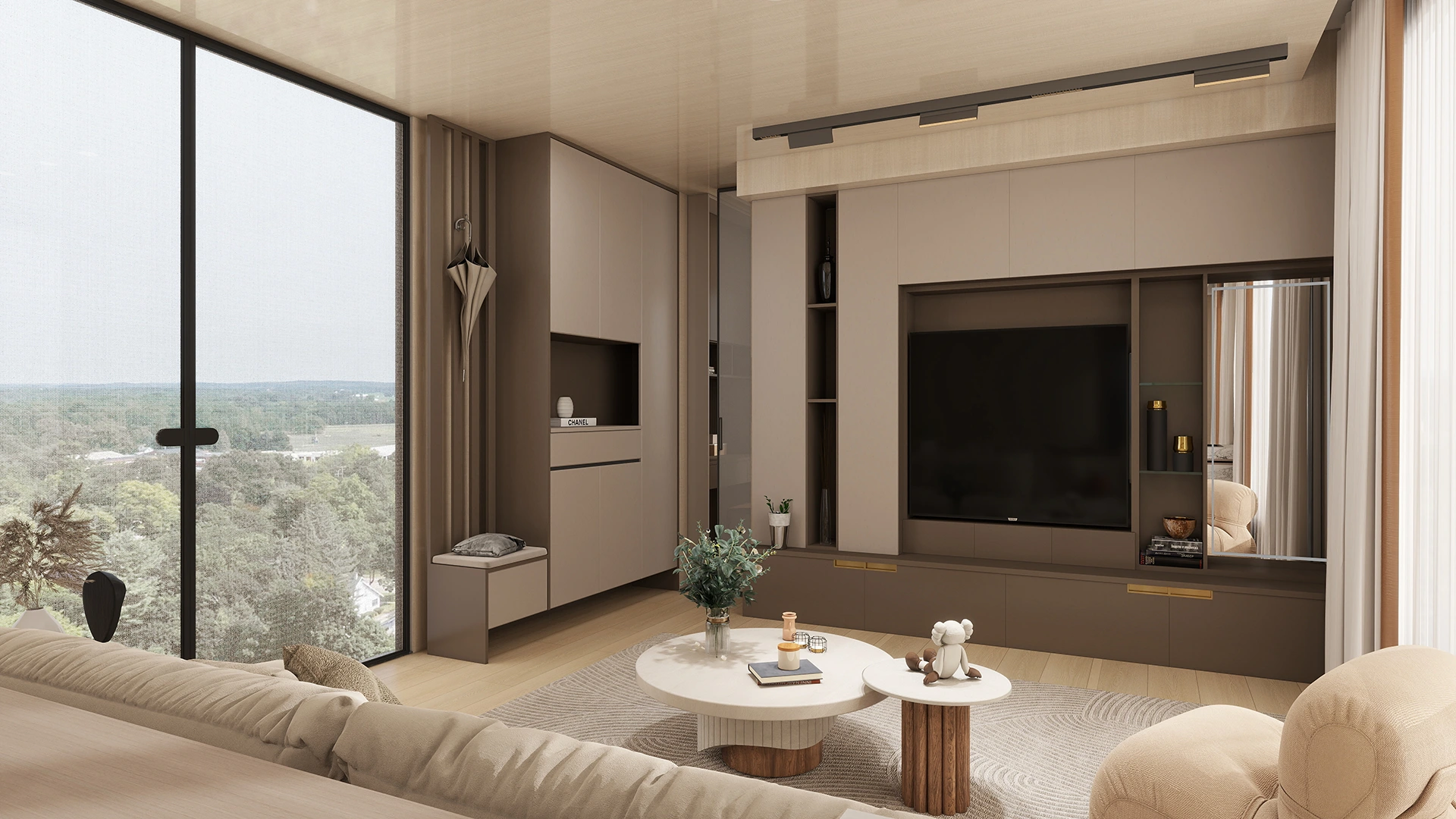 We designed a 60-square-meter two-bedroom apartment that emphasizes comfort and practicality, featuring an intelligent home system for easy rental management.